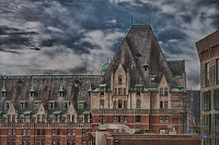 The previous two were taken from the old Eaton's Parkade, as is the first image in this set. This HDR image was taken from the corner of the parkade of the north-side of the Empress Hotel. You can see the scaffolding on the front of the building, where they're doing some restoration.